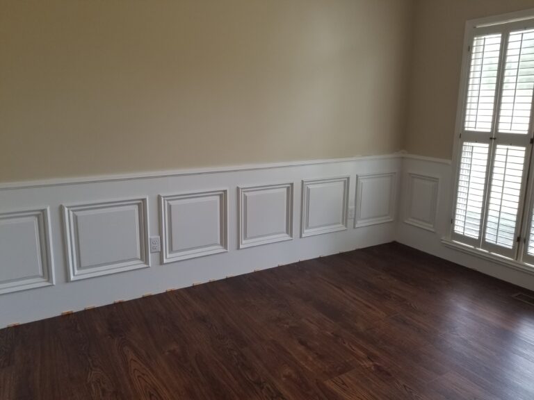 Depicted in the image below is wainscoting that was installed in a dining room to improve its appearance.